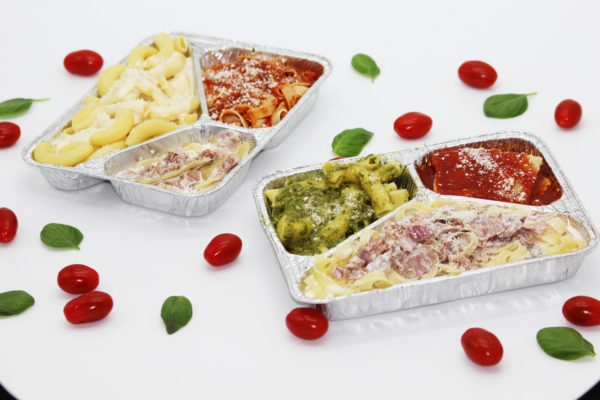 Pâtes fraiches, Sauce Tomate, Sauce Bolognaise Sauce 4 Fromages (Gorgonzola, Taleggio, Fontina, Parmesan), Ravioli, Viande hâchée porc et veau (et/ou Pesto), Fromages